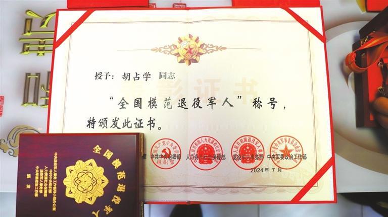 胡占學榮獲的“全國模范退役軍人”證書(shu)。