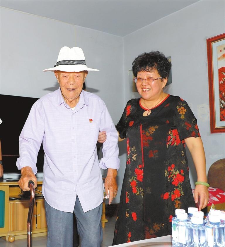 見到94歲(sui)的胡(hu)占學時,他正(zheng)在小(xiao)女兒(er)胡(hu)英(ying)敏的攙(chan)扶下在屋里行走,盡管步履蹣跚,但依舊神采奕(yi)奕(yi)。