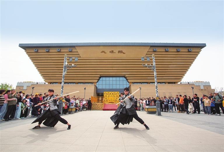 大漢賦、天馬歌、涼州詞(ci)三(san)大場(chang)館創(chuang)新應用AR、VR技術,讓(rang)游客(ke)沉(chen)浸式(shi)體驗漢文化(hua)、馬文化(hua)。園區內時常(chang)舉行快閃、舞(wu)蹈等(deng)表演(yan),讓(rang)觀(guan)眾大飽眼福。