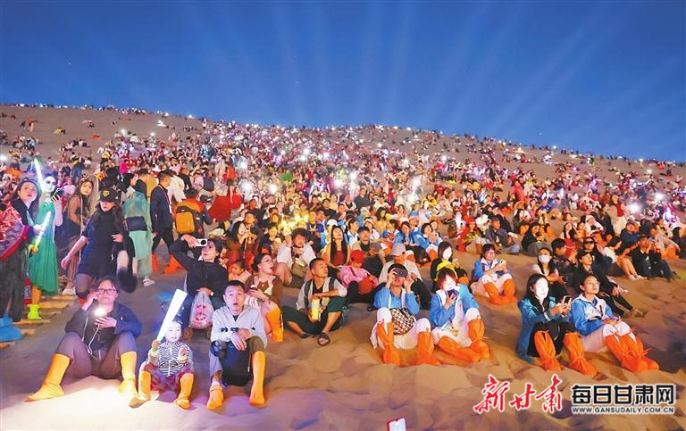 9月19日,游客在鳴沙山參與“萬人星(xing)空演(yan)唱會”。 新(xin)甘(gan)肅·甘(gan)肅日報記者 田蹊(xi) 馮樂凱(kai)