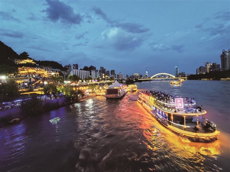 作為(wei)蘭(lan)州游(you)(you)的必打卡景(jing)點(dian),整個國(guo)慶假期中山(shan)(shan)橋上的游(you)(you)客(ke)絡繹不絕。每到傍晚(wan),中山(shan)(shan)橋上更是人(ren)山(shan)(shan)人(ren)海,“金城壹號(hao)(hao)”“悠游(you)(you)蘭(lan)州號(hao)(hao)”“黃河(he)啤(pi)酒號(hao)(hao)”等游(you)(you)輪載著南(nan)來北往的游(you)(you)客(ke)穿梭于黃河(he)之(zhi)(zhi)上,為(wei)黃河(he)之(zhi)(zhi)濱增添了一道流動的風景(jing)。