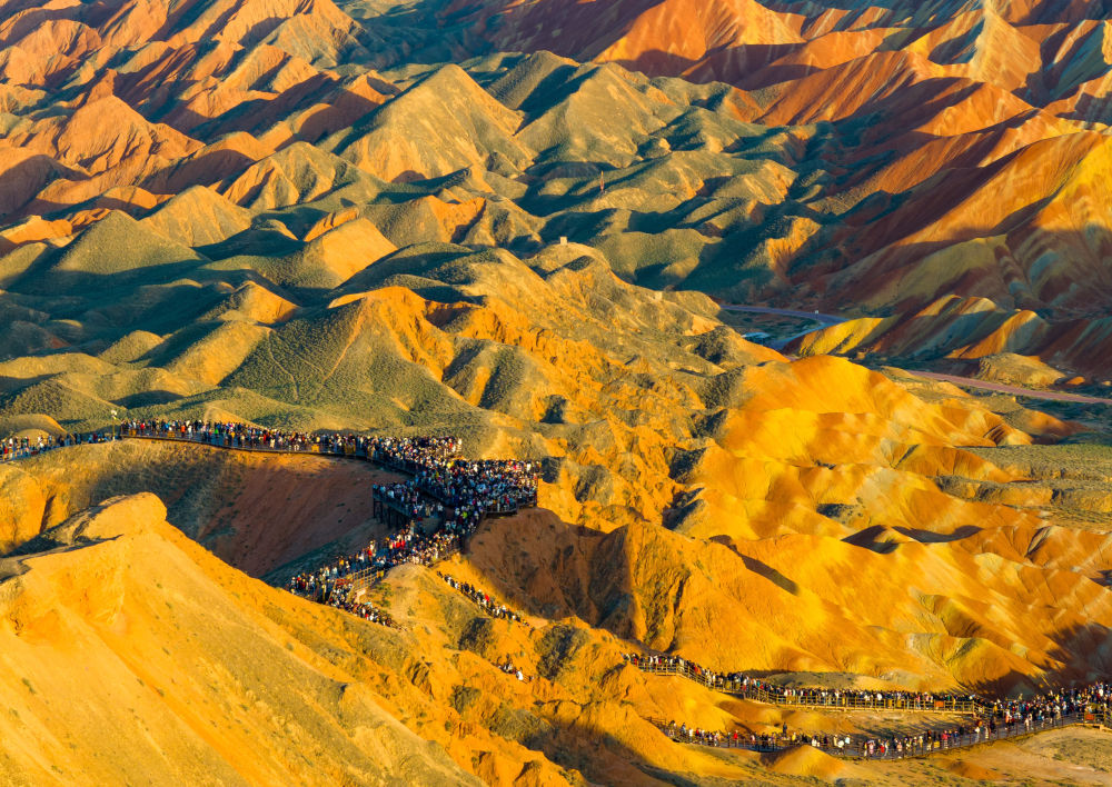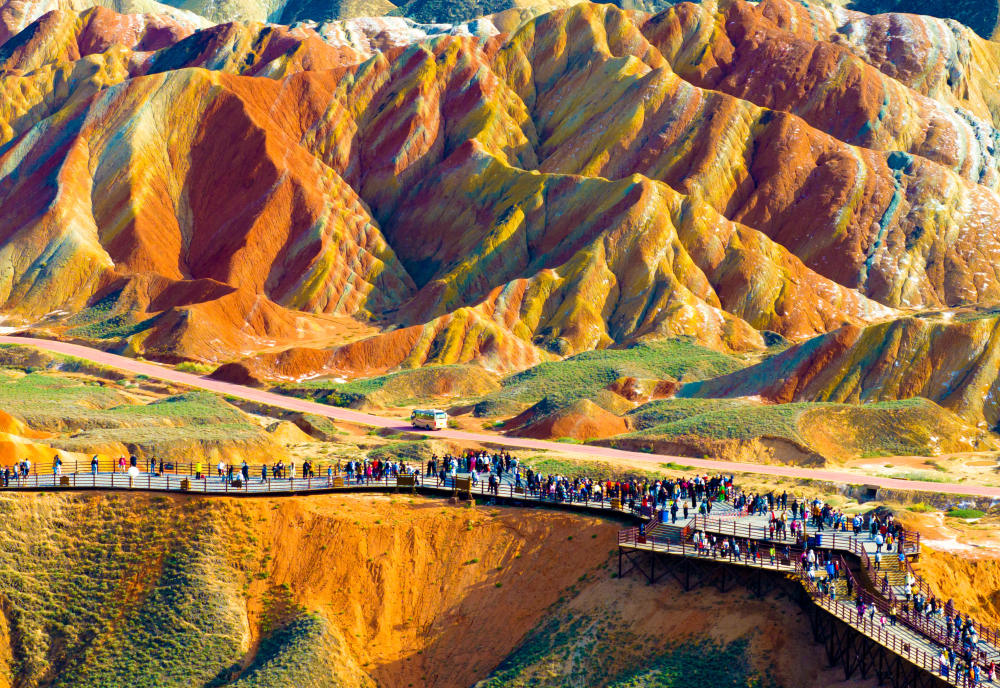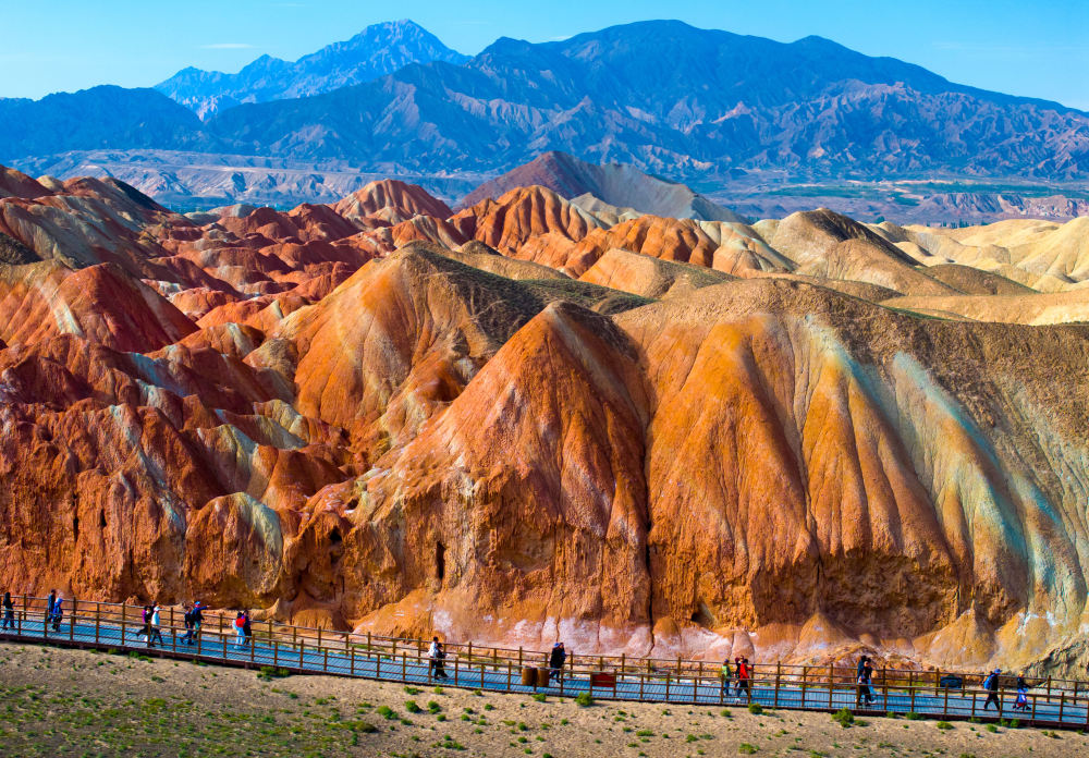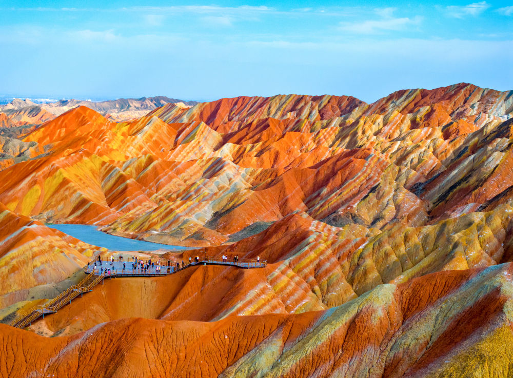 入秋(qiu)以來,甘肅省張(zhang)掖市臨澤縣(xian)七彩丹霞景區迎(ying)來游(you)客高峰。丹霞地貌色彩艷麗、造型(xing)奇特(te),使游(you)客仿佛置身畫境,令(ling)人(ren)流連忘(wang)返。