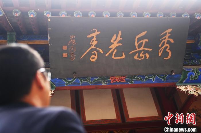 10月23日,甘(gan)肅省天水(shui)市秦(qin)安(an)縣鳳山景區,講(jiang)解員(yuan)介紹魯岱下人(ren)許行所題隸書“秀(xiu)岳先春”的(de)匾(bian)額。匾(bian)額文化是中(zhong)華(hua)民(min)族獨(du)特(te)的(de)民(min)俗文化,它把(ba)辭賦詩文、書法(fa)篆(zhuan)刻、建筑藝術融(rong)為(wei)一體。秦(qin)安(an)作(zuo)為(wei)歷(li)史文化名(ming)城,其不少景區內都存在歷(li)史名(ming)人(ren)所題珍貴匾(bian)額,見證了歷(li)史變遷。中(zhong)新社記者 李亞龍(long) 攝