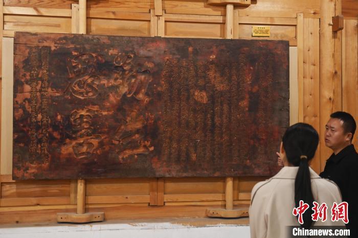 10月23日,甘(gan)肅省天水市秦(qin)安縣明清(qing)街秦(qin)安匾(bian)額博(bo)物館,游(you)人(ren)參觀歷史名(ming)人(ren)胡纘宗所題《世(shi)代昌隆》的匾(bian)額。中新社記(ji)者 李(li)亞龍(long) 攝