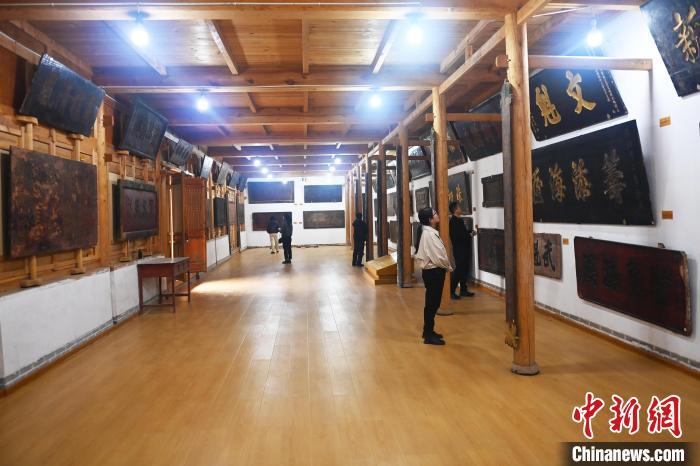 10月23日,甘肅省天水市秦安縣(xian)明(ming)清街秦安匾額(e)博物館,游人參(can)觀當地收藏(zang)的匾額(e)。中新社記者(zhe) 李亞龍 攝