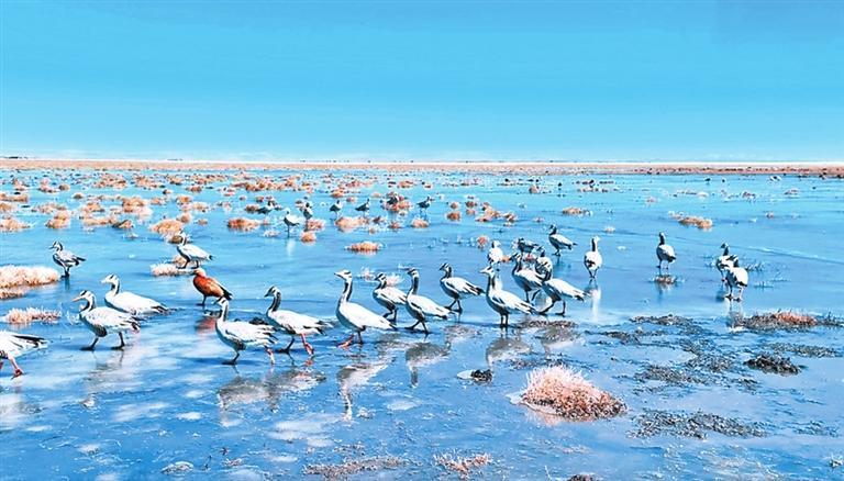 也正是(shi)由(you)于(yu)黃河(he)在瑪曲(qu)縣境內彎曲(qu)流(liu)過,在每(mei)年(nian)夏(xia)季水量充沛(pei)時,形成(cheng)大(da)片濕地與沼澤,有大(da)群的(de)天(tian)鵝灰鶴游弋生息。也形成(cheng)廣袤無垠的(de)豐美草原(yuan),幾乎集中了草原(yuan)上近百種牧草,構(gou)成(cheng)了如(ru)詩如(ru)畫般的(de)風景。