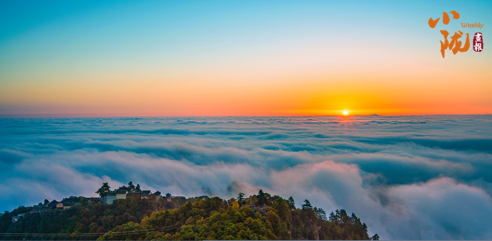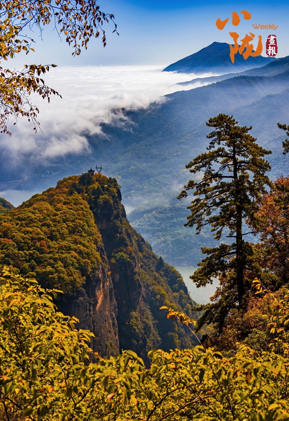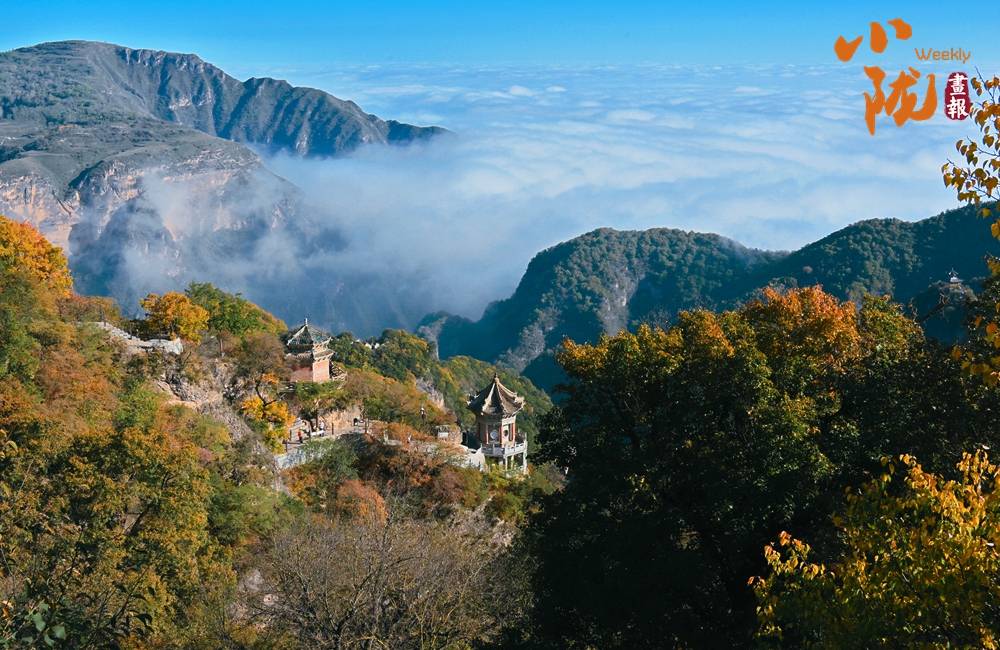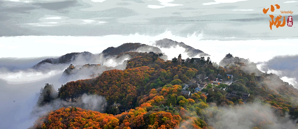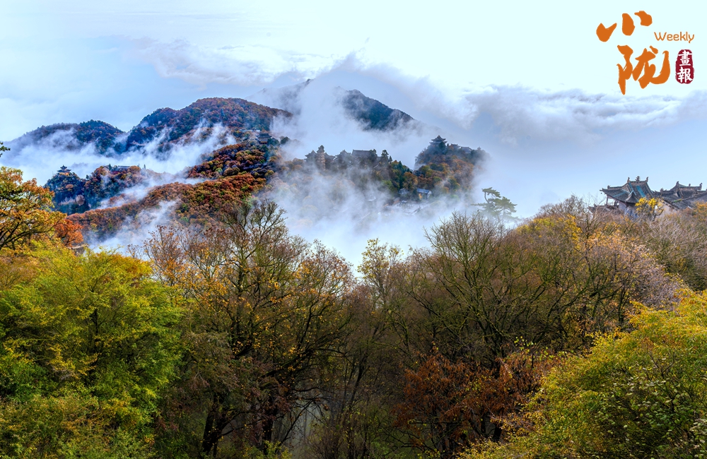 云霧繚繞,金黃的葉子似金色海洋,覆(fu)蓋山脈,在陽光(guang)照(zhao)耀下散發著溫暖光(guang)芒,仿佛為崆峒山披上了璀璨外衣。