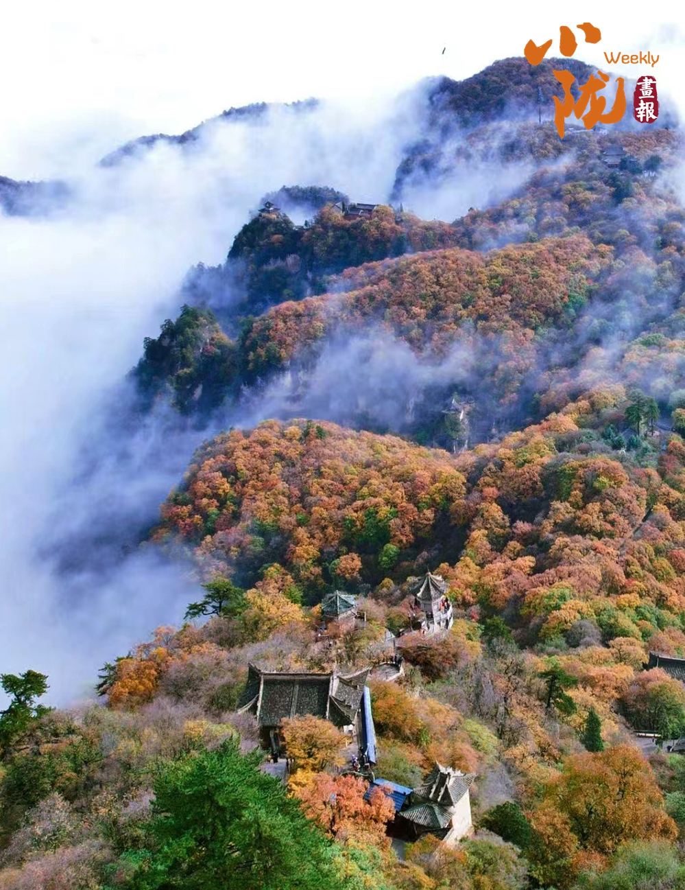 一葉知冬(dong),遍地金黃。五彩斑斕的(de)林木與古香古色(se)的(de)建筑、遠處的(de)山(shan)巒云霧相映(ying)成趣,盡顯詩(shi)意之美。
