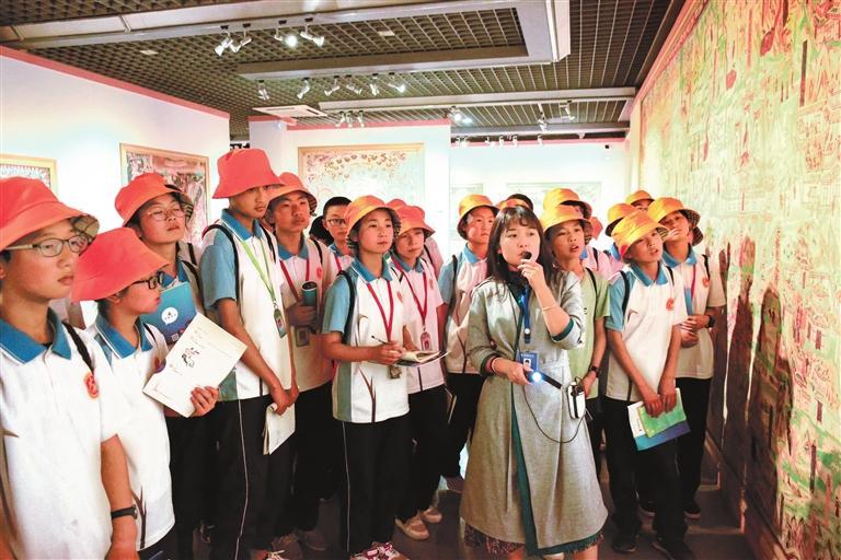 臨洮縣椒(jiao)山初級中學(xue)學(xue)生在(zai)敦煌藝術館研學(xue)。 本文(wen)圖(tu)片由省(sheng)文(wen)旅(lv)廳提供