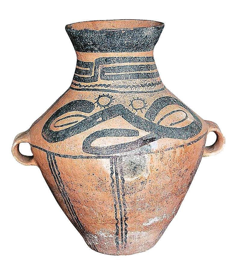 姬家(jia)川類型雙勾太陽(yang)紋(wen)彩陶罐