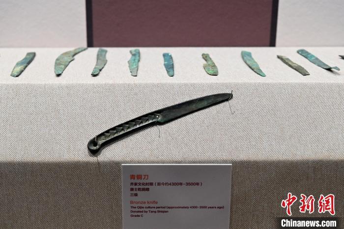 11月27日,甘肅省臨夏州廣河(he)縣齊家文化博物館(guan)展出的青銅(tong)刀。 九美旦增 攝