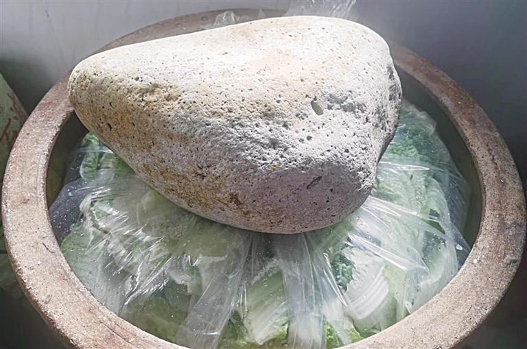 交談(tan)中,菜(cai)市(shi)場爺爺奶奶輩(bei)的(de)老人(ren)說(shuo),除(chu)了囤好(hao)(hao)大白菜(cai),“一(yi)口酸菜(cai)缸(gang)(gang)(gang)(gang)(gang),一(yi)塊(kuai)腌(a)(a)酸菜(cai)用(yong)(yong)(yong)的(de)大石(shi)頭”也必(bi)不(bu)可(ke)少。“前一(yi)年缸(gang)(gang)(gang)(gang)(gang)里(li)的(de)菜(cai)吃完后,要(yao)把空缸(gang)(gang)(gang)(gang)(gang)倒扣(kou)在地(di)面上,接上地(di)氣,除(chu)去缸(gang)(gang)(gang)(gang)(gang)中的(de)異味,然后洗干凈,晾干,來年再用(yong)(yong)(yong)。”老人(ren)家(jia)說(shuo),傳統的(de)近半人(ren)高的(de)醬色大缸(gang)(gang)(gang)(gang)(gang)一(yi)般都(dou)(dou)是家(jia)里(li)的(de)老人(ren)留(liu)下來的(de),那(nei)時候大家(jia)的(de)生活條件不(bu)好(hao)(hao),一(yi)家(jia)人(ren)的(de)美食,都(dou)(dou)被腌(a)(a)制在壇(tan)壇(tan)罐罐里(li),甚(shen)至搬家(jia)都(dou)(dou)舍(she)不(bu)得丟棄這口缸(gang)(gang)(gang)(gang)(gang)。腌(a)(a)菜(cai)用(yong)(yong)(yong)的(de)壓菜(cai)石(shi)也是有講究的(de),先要(yao)夠分(fen)量,太(tai)小了壓不(bu)實(shi),太(tai)大了不(bu)方便取菜(cai),也有人(ren)常常用(yong)(yong)(yong)幾塊(kuai)卵石(shi)同(tong)時壓菜(cai)的(de)辦法來解(jie)決;最好(hao)(hao)還要(yao)表面光(guang)滑、不(bu)扎手、好(hao)(hao)清洗,“基本都(dou)(dou)是黃河邊(bian)撿的(de)石(shi)頭拿回去洗干凈用(yong)(yong)(yong)”。