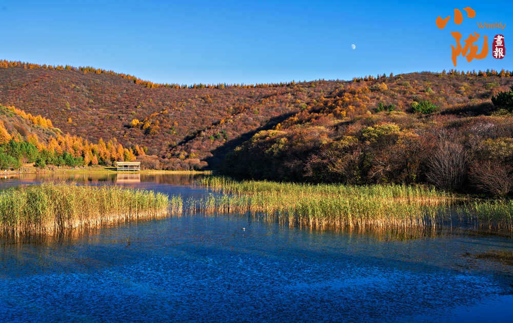 群山環抱里的朝那湫,水面開闊,清澈透(tou)明,周圍(wei)層林(lin)盡(jin)染,藍天、蘆葦倒影在明凈的水面上,恰(qia)似一幅絕妙的山水風景圖。