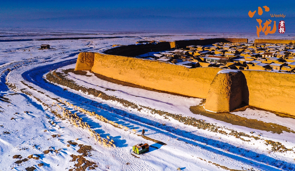 陽光照耀著(zhu)古(gu)城墻,閃爍著(zhu)淡淡的金光。羊群回歸古(gu)城,在(zai)白雪覆(fu)蓋(gai)的戈壁(bi)灘留下了串串蹄印(yin),生(sheng)命的希望就在(zai)潔凈的雪中孕育。