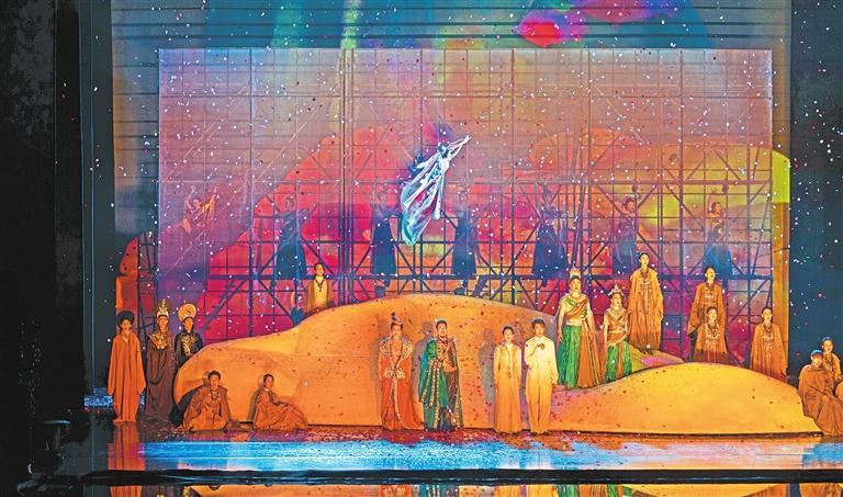 大型原創(chuang)音樂劇(ju)《飛天(tian)》以“大愛”立意敘(xu)事,打破時空界(jie)限(xian),利用現代舞美技術(shu),多維度(du)、多角度(du)、多層(ceng)次地展現了敦(dun)煌石窟(ku)的無窮魅力,令觀眾(zhong)身臨其境(jing)、沉浸其中,情感(gan)共(gong)鳴油然而(er)生(sheng),獲得獨特的藝術(shu)體驗。(本文配圖均為《飛天(tian)》劇(ju)照,由蘭(lan)州大劇(ju)院提供)