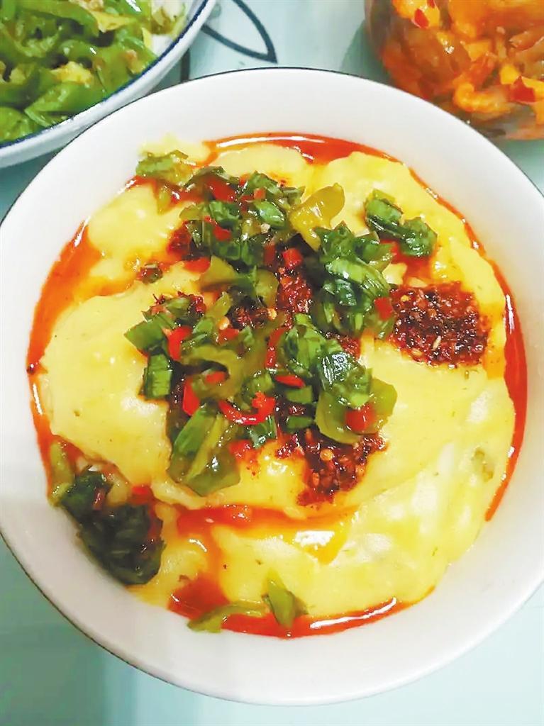 熗酸(suan)菜(cai)(cai)。一汪胡麻油,幾(ji)段干(gan)蔥,抑或幾(ji)片(pian)薄蒜(suan)(suan)片(pian),進(jin)鍋(guo)一炒,那個(ge)味(wei)道,真(zhen)清香(xiang)。自是言語(yu)無法描述的。待(dai)蒜(suan)(suan)片(pian)焦黃(huang),倒進(jin)酸(suan)菜(cai)(cai)。酸(suan)菜(cai)(cai)炒好,盛大瓷碗,母(mu)親總切幾(ji)絲干(gan)辣椒(jiao)(jiao),剁(duo)一把菠(bo)菜(cai)(cai),撒上面,紅綠白黑,醒目提味(wei)。有些年頭(tou),母(mu)親秋(qiu)天曬(shai)了蘿卜(bu)干(gan),醋腌了,到(dao)冬天吃。當然,青(qing)辣椒(jiao)(jiao)、蒜(suan)(suan)薹、蘑(mo)菇之類的富(fu)貴(gui)菜(cai)(cai),就(jiu)沒有了,想(xiang)也(ye)沒想(xiang)過。
