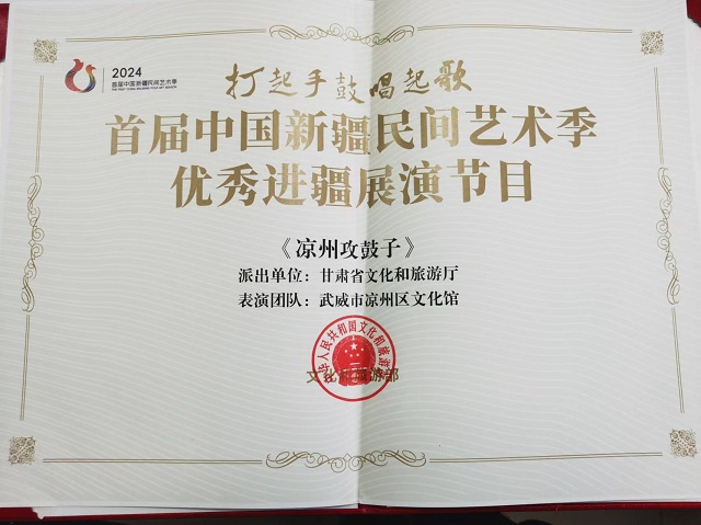 中國甘肅網12月24日(ri)訊(xun)(西北角(jiao)·中國甘肅網記(ji)者(zhe) 任磊(lei))近(jin)日,文(wen)化和旅游(you)部(bu)公布了首屆中國新疆民間藝術季優秀進疆展演節目名(ming)單,甘肅省《涼州攻鼓子》成功入選。