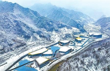 從縣城驅車(che)不過半小時(shi)的車(che)程(cheng),一路青松白雪(xue),生機盎然。在游客(ke)中(zhong)心,只(zhi)見一大片水面倒映山川,文房四寶寫意排布,“四水歸(gui)堂(tang)”巧奪天(tian)工,龍軀(qu)接連兩岸山勢,天(tian)地舒卷,日(ri)(ri)月提筆(bi),步履為印,山水著(zhu)墨(mo),我們決定(ding)從這里開啟冬日(ri)(ri)青龍山之旅。