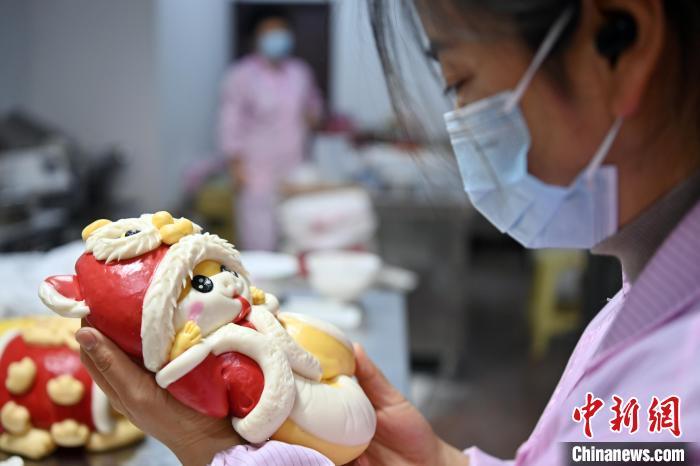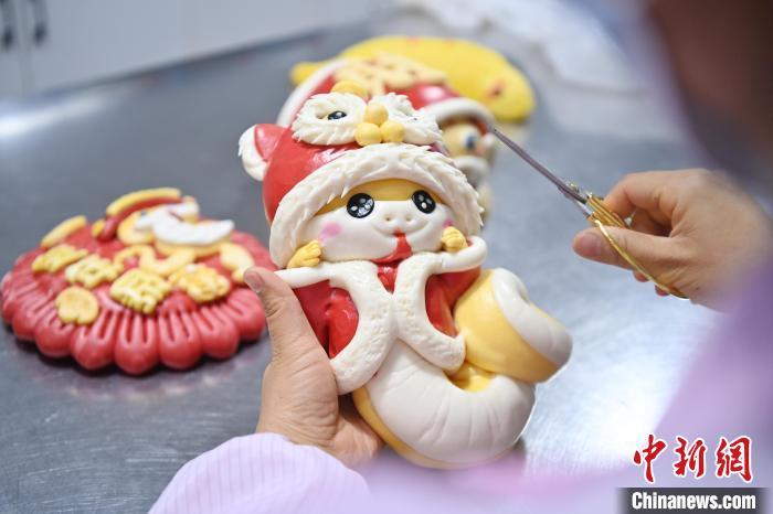 圖為面點師制作的“萌(meng)蛇”花饃。中(zhong)新社記者 九美旦增 攝