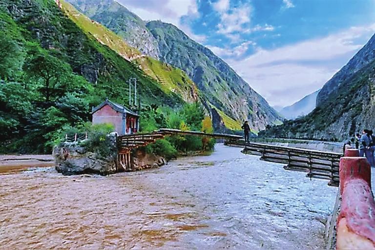 宕昌(chang)岷江(jiang)上的握臂橋(qiao)。