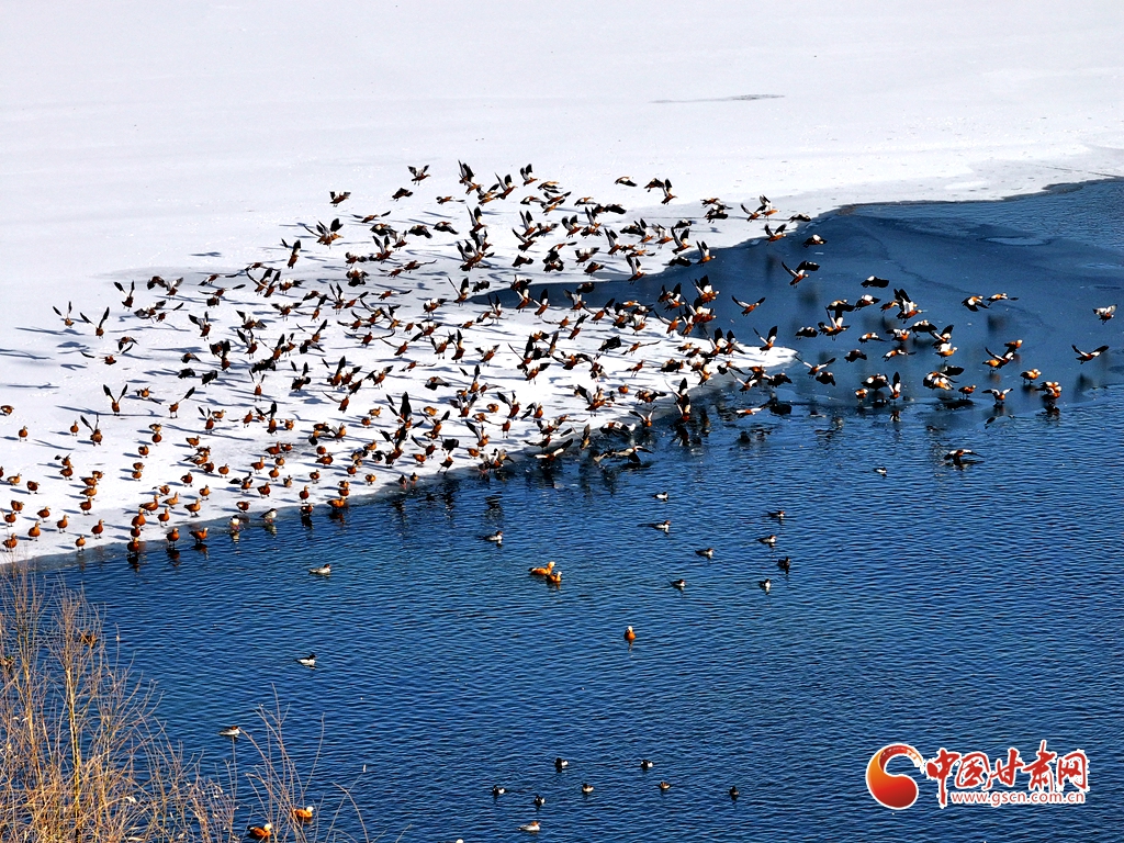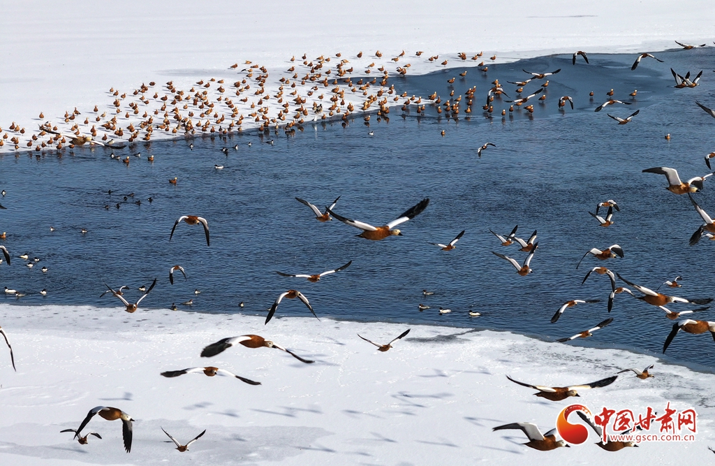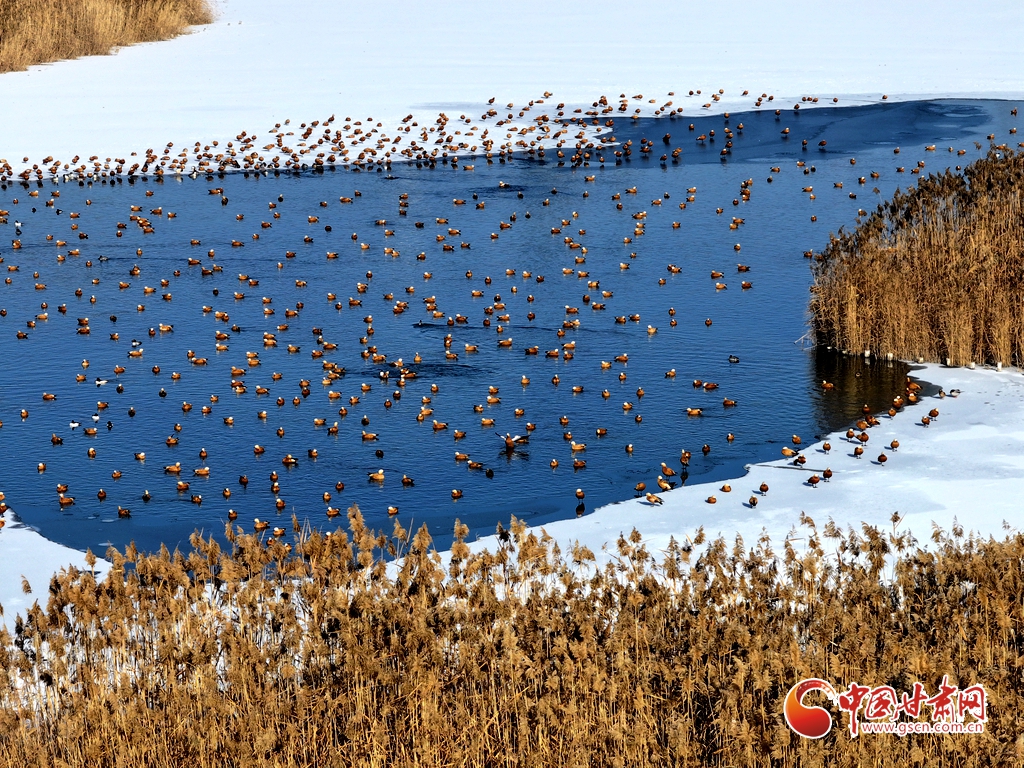 1月11日,甘肅省張掖國家濕地公園里,成群的赤麻鴨(ya)棲息覓(mi)食(shi),成為濕地一道(dao)亮麗風景。
