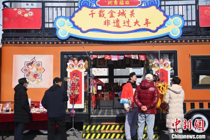 2月8日(ri),甘(gan)肅省(sheng)蘭州市(shi)城關(guan)區“非(fei)(fei)遺年貨購物月”活(huo)動(dong)現場,游(you)人選(xuan)購非(fei)(fei)遺文創產(chan)品(pin)。中新社記者 李(li)亞龍(long) 攝