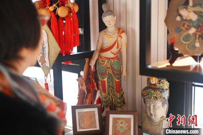 2月(yue)8日,甘肅省蘭州市城關區“非遺年貨購物月(yue)”活動現場,游人(ren)挑選敦煌系列文創產品。中新(xin)社(she)記者 李亞龍 攝