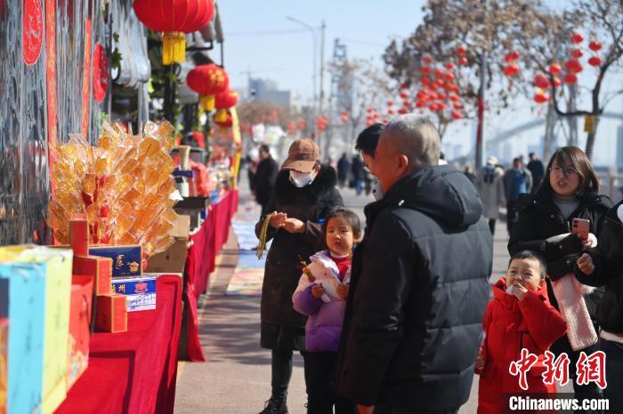 2月8日(ri),甘肅省蘭(lan)州市城關區“非(fei)遺年(nian)貨購(gou)(gou)物月”活(huo)動現場,游人購(gou)(gou)買蘭(lan)州三炮(pao)臺、糖(tang)畫等(deng)傳統美食。 中(zhong)新社記者(zhe) 李亞龍 攝