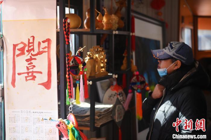 2月8日,甘肅省蘭州市(shi)城關區“非遺年貨購(gou)物月”活動現(xian)場(chang),游人選購(gou)非遺文創產品。 中新社記(ji)者 李亞(ya)龍 攝