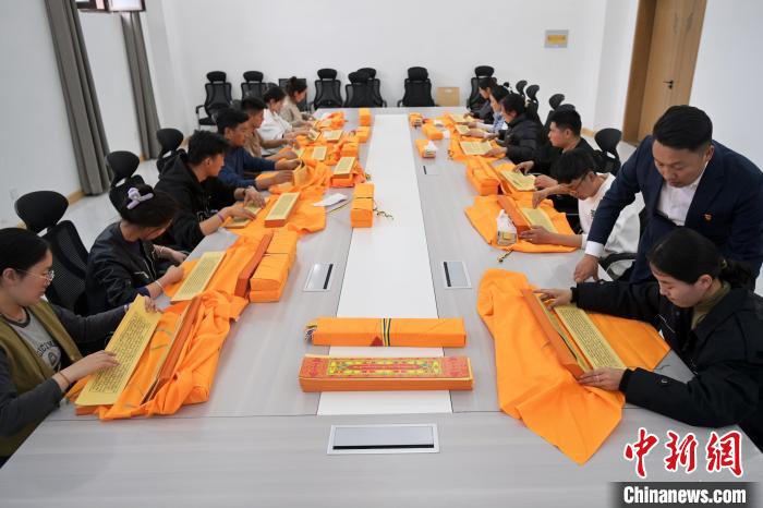 2月(yue)27日,在甘(gan)肅甘(gan)南藏(zang)族自治州碌曲(qu)縣益(yi)西達吉科技有限公(gong)司內,工(gong)作(zuo)人(ren)員(yuan)正在進行(xing)藏(zang)文(wen)(wen)古(gu)籍(ji)數(shu)(shu)字化(hua)相關工(gong)作(zuo)。該公(gong)司主要從事民族古(gu)籍(ji)數(shu)(shu)字化(hua)建設和古(gu)籍(ji)文(wen)(wen)獻數(shu)(shu)據(ju)庫建設,自2019年(nian)以來,承擔(dan)西藏(zang)、四川、甘(gan)肅等(deng)省(sheng)區(qu)的藏(zang)文(wen)(wen)古(gu)籍(ji)數(shu)(shu)字化(hua)項目(mu)。圖為工(gong)作(zuo)人(ren)員(yuan)對(dui)藏(zang)文(wen)(wen)古(gu)籍(ji)(木刻版)做數(shu)(shu)字化(hua)工(gong)作(zuo)前期準備。中(zhong)新社記者 九美旦增 攝