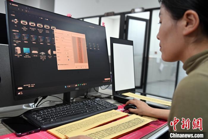 2月27日(ri),在(zai)甘(gan)肅甘(gan)南(nan)藏(zang)族自(zi)治州(zhou)碌曲縣(xian)益西達吉科技有限公(gong)司內(nei),工作(zuo)人(ren)員正在(zai)進(jin)行藏(zang)文古籍數字化相關工作(zuo)。該公(gong)司主要從(cong)事民(min)族古籍數字化建設(she)和古籍文獻數據庫(ku)建設(she),自(zi)2019年以來,承擔西藏(zang)、四川、甘(gan)肅等省區的(de)藏(zang)文古籍數字化項目。圖為(wei)工作(zuo)人(ren)員用(yong)該公(gong)司研發的(de)藏(zang)文信息處(chu)理系統對古籍數字化內(nei)容進(jin)行檢(jian)查。中新社記者 九美(mei)旦增 攝