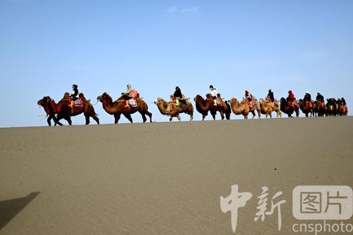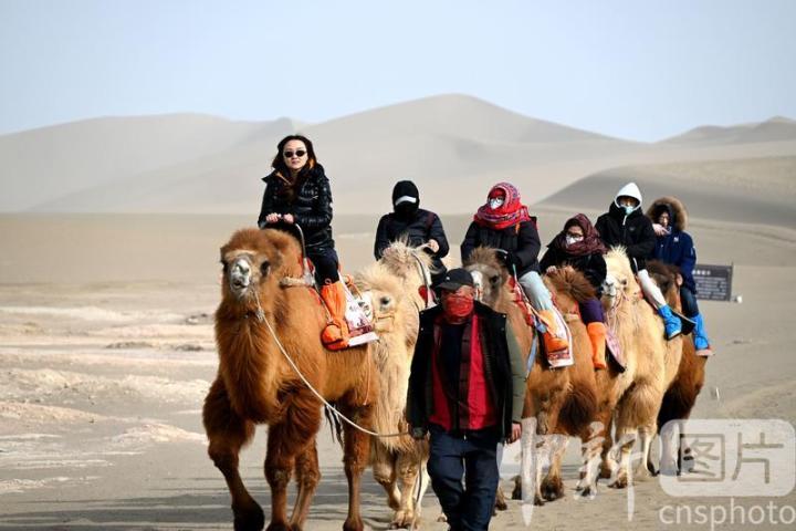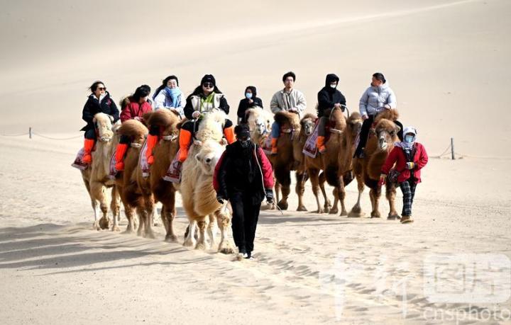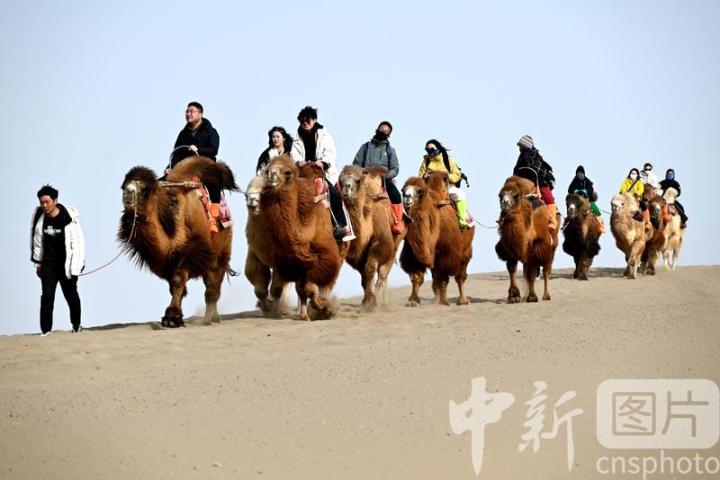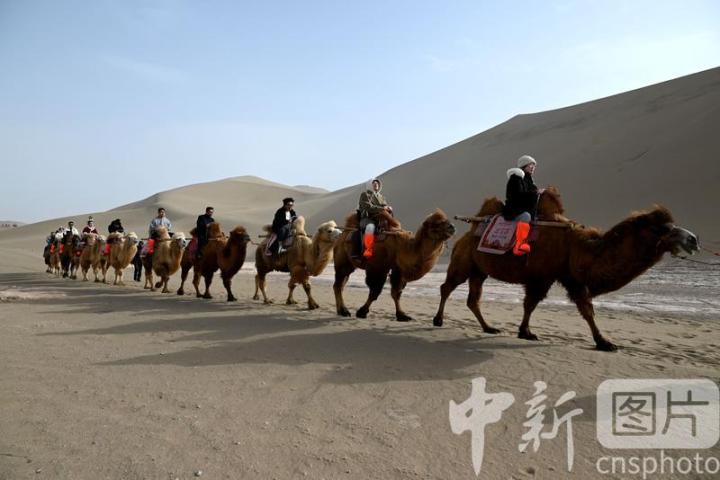 2025年(nian)3月2日,游(you)客在甘肅省敦煌(huang)市鳴(ming)沙山月牙泉景區(qu)游(you)覽。