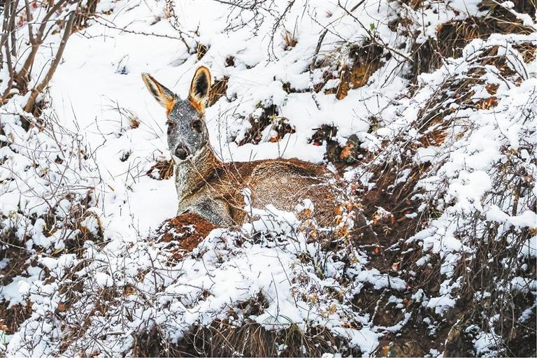 攝影師(shi)鏡頭下,一只馬麝安然(ran)臥在(zai)(zai)雪(xue)地上,它的耳朵偶爾(er)會(hui)輕(qing)輕(qing)抖動(dong)一下,像是在(zai)(zai)用(yong)心傾聽著風中傳(chuan)來的細微聲響。它優美的身形與周圍(wei)的景色完美融合在(zai)(zai)一起,寧靜(jing)而祥和(he)。