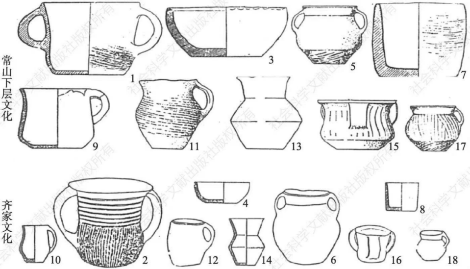 齊家文化和(he)常山下層文化陶器對比(bi)圖