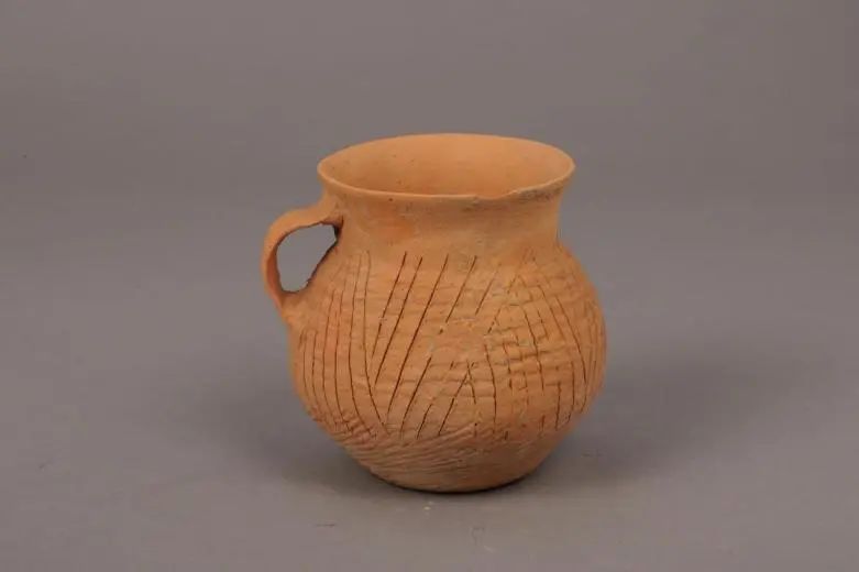 刻(ke)劃紋單耳紅(hong)陶(tao)罐(秦(qin)安縣博(bo)物(wu)館藏)