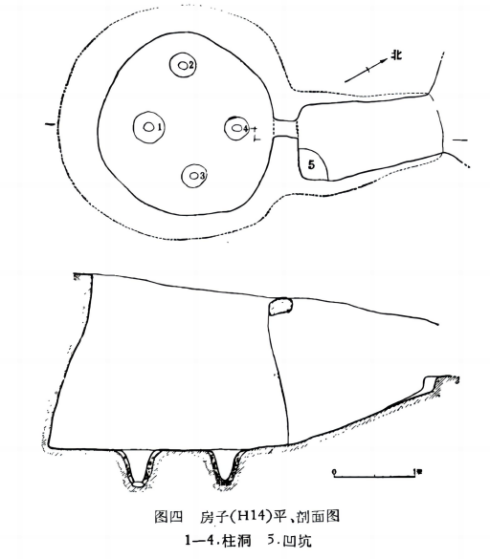 鎮原常山遺址房址H14平、剖(pou)面圖