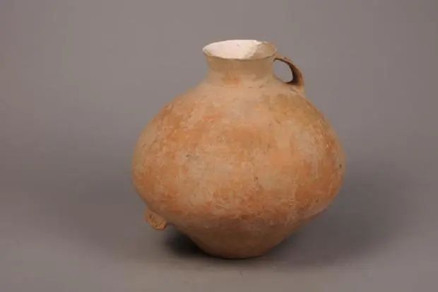 單耳折腹(fu)紅陶罐(鎮(zhen)原(yuan)縣博物館藏)
