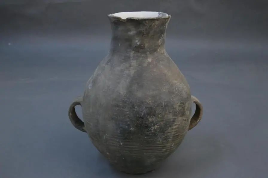 籃紋雙耳灰陶罐(寧縣博物(wu)館藏)
