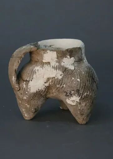 窩紋灰陶(tao)斝(鎮(zhen)原縣博物館藏)