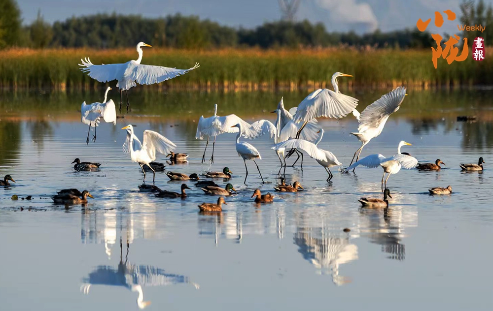 春天,這里萬物復蘇,蘆葦(wei)新綠(lv),候鳥歸來,整(zheng)個公(gong)園充(chong)滿生機。它們依水而居,或(huo)在水中(zhong)游泳和(he)(he)潛水,或(huo)在淺水、灘(tan)地與岸邊涉行,或(huo)在其上空飛行,引(yin)得游人(ren)們駐足觀(guan)看,構成(cheng)一幅(fu)人(ren)與自然和(he)(he)諧(xie)共生的生態畫卷(juan)。