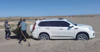 車子終于在(zai)陷入(ru)沙(sha)地3小時(shi)后(hou)脫(tuo)離困境。考(kao)察團在(zai)羊(yang)井子鄉(xiang)用過午餐后(hou)返回酒泉。