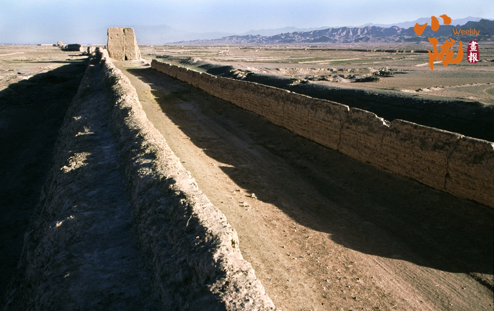 在(zai)黛(dai)藍色山脈的(de)(de)(de)映襯下,漢(han)明長城(cheng)(cheng)蜿(wan)蜒(yan)并行,高于地(di)面(mian)的(de)(de)(de)黃色城(cheng)(cheng)墻是(shi)明長城(cheng)(cheng),而顏色稍深的(de)(de)(de)壕溝是(shi)漢(han)長城(cheng)(cheng),兩(liang)條跨(kua)越千載的(de)(de)(de)古長城(cheng)(cheng)最近(jin)處不過十(shi)余米,仿(fang)佛攜手(shou)講述著遠(yuan)古的(de)(de)(de)故事(shi)……它們也猶如(ru)兩(liang)位忠誠的(de)(de)(de)衛士,守護(hu)著這(zhe)片古老的(de)(de)(de)土(tu)地(di),也見證了絲綢之路的(de)(de)(de)興衰變遷。