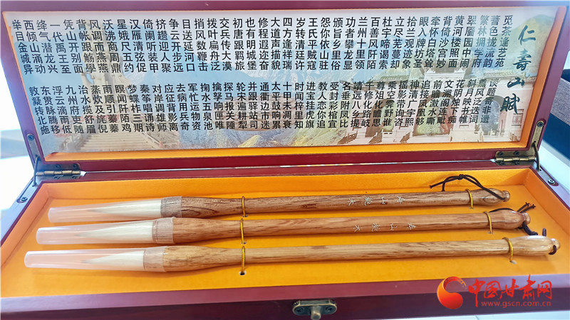 “這是(shi)上海著名的周虎臣毛(mao)筆(bi),我(wo)們將(jiang)非(fei)遺引入蘭州(zhou),用桃(tao)木(mu)做毛(mao)筆(bi),帶來更好(hao)的人文體驗。”蔣(jiang)芳說。