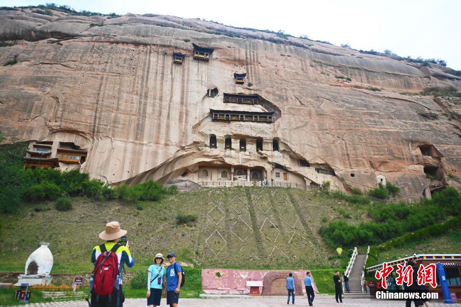 6月23日,游(you)人參觀位于甘肅(su)(su)省張掖市(shi)肅(su)(su)南(nan)裕固族自治(zhi)縣祁連山(shan)下的馬蹄(ti)寺(si)石窟。