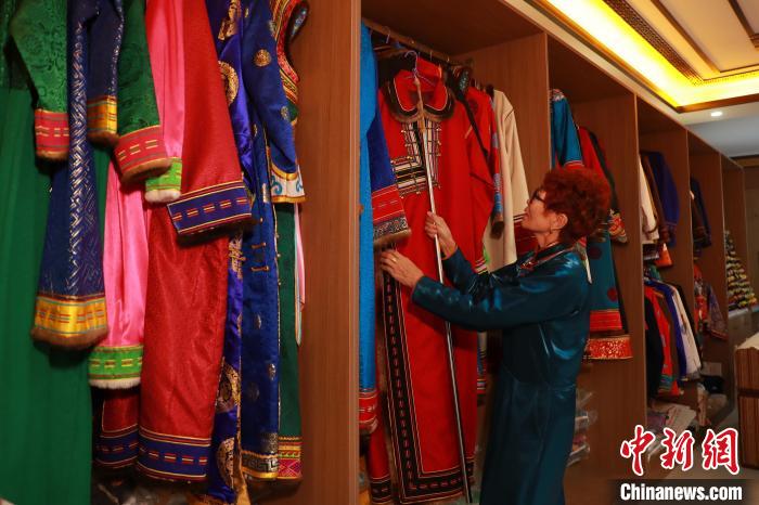 圖(tu)為娜仁其其格(ge)正(zheng)在手工縫制傳統蒙(meng)古族服飾。陳坤 攝