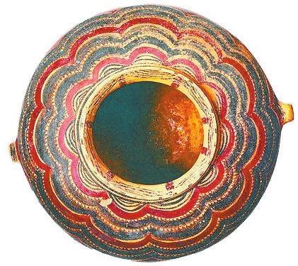 其中(zhong)以(yi)(yi)馬(ma)家(jia)窯(yao)文(wen)化(hua)(hua)彩(cai)(cai)陶(tao)(tao)(tao)為代表(biao),蘊含著眾多神秘的(de)(de)(de)社會(hui)文(wen)化(hua)(hua)信息,以(yi)(yi)線條(tiao)作為造型手段、以(yi)(yi)黑色(墨色)作為主(zhu)要基(ji)(ji)調,奠定了中(zhong)國(guo)畫發展的(de)(de)(de)歷史基(ji)(ji)礎與以(yi)(yi)線描為特(te)征的(de)(de)(de)基(ji)(ji)本形式。馬(ma)家(jia)窯(yao)文(wen)化(hua)(hua)彩(cai)(cai)陶(tao)(tao)(tao)也是中(zhong)國(guo)音樂舞(wu)(wu)(wu)蹈(dao)的(de)(de)(de)開端呈現。1973年(nian),甘青地區大通縣(xian)出土(tu)(tu)的(de)(de)(de)馬(ma)家(jia)窯(yao)文(wen)化(hua)(hua)彩(cai)(cai)陶(tao)(tao)(tao)舞(wu)(wu)(wu)蹈(dao)紋盆(pen),內(nei)壁(bi)繪舞(wu)(wu)(wu)蹈(dao)人(ren)(ren)物3組,每組5人(ren)(ren),令人(ren)(ren)感(gan)受到(dao)遠古舞(wu)(wu)(wu)蹈(dao)強烈的(de)(de)(de)節奏(zou)感(gan)。1991年(nian),甘肅武威市發現的(de)(de)(de)彩(cai)(cai)陶(tao)(tao)(tao)舞(wu)(wu)(wu)蹈(dao)紋盆(pen),內(nei)壁(bi)繪有兩組手拉手的(de)(de)(de)舞(wu)(wu)(wu)蹈(dao)人(ren)(ren)物,每組9人(ren)(ren),舞(wu)(wu)(wu)蹈(dao)人(ren)(ren)數更多。1995年(nian),宗日遺址再次出土(tu)(tu)一件(jian)馬(ma)家(jia)窯(yao)文(wen)化(hua)(hua)彩(cai)(cai)繪舞(wu)(wu)(wu)蹈(dao)紋盆(pen),內(nei)壁(bi)所繪舞(wu)(wu)(wu)蹈(dao)人(ren)(ren)物兩組,分(fen)別為11人(ren)(ren)和(he)13人(ren)(ren),給人(ren)(ren)一種優雅的(de)(de)(de)舞(wu)(wu)(wu)蹈(dao)意境。1986年(nian),甘肅省永登縣(xian)出土(tu)(tu)馬(ma)家(jia)窯(yao)文(wen)化(hua)(hua)的(de)(de)(de)彩(cai)(cai)陶(tao)(tao)(tao)鼓。這(zhe)些珍貴(gui)的(de)(de)(de)彩(cai)(cai)陶(tao)(tao)(tao)器物成為研究中(zhong)國(guo)原始歌舞(wu)(wu)(wu)和(he)音樂起源的(de)(de)(de)佐證(zheng)。
