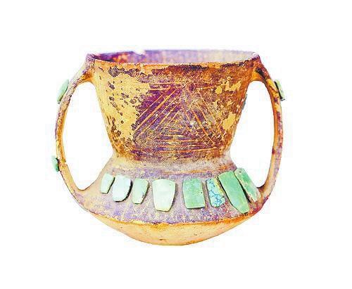 鑲綠(lv)松石回紋彩陶罐 四(si)壩文(wen)(wen)化 甘肅(su)省(sheng)文(wen)(wen)物考(kao)古研究(jiu)所藏