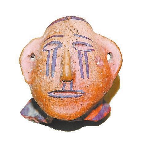 人頭型(xing)彩(cai)陶器蓋 馬(ma)家窯文化(hua)馬(ma)廠類型(xing) 臨夏(xia)市博(bo)物館藏