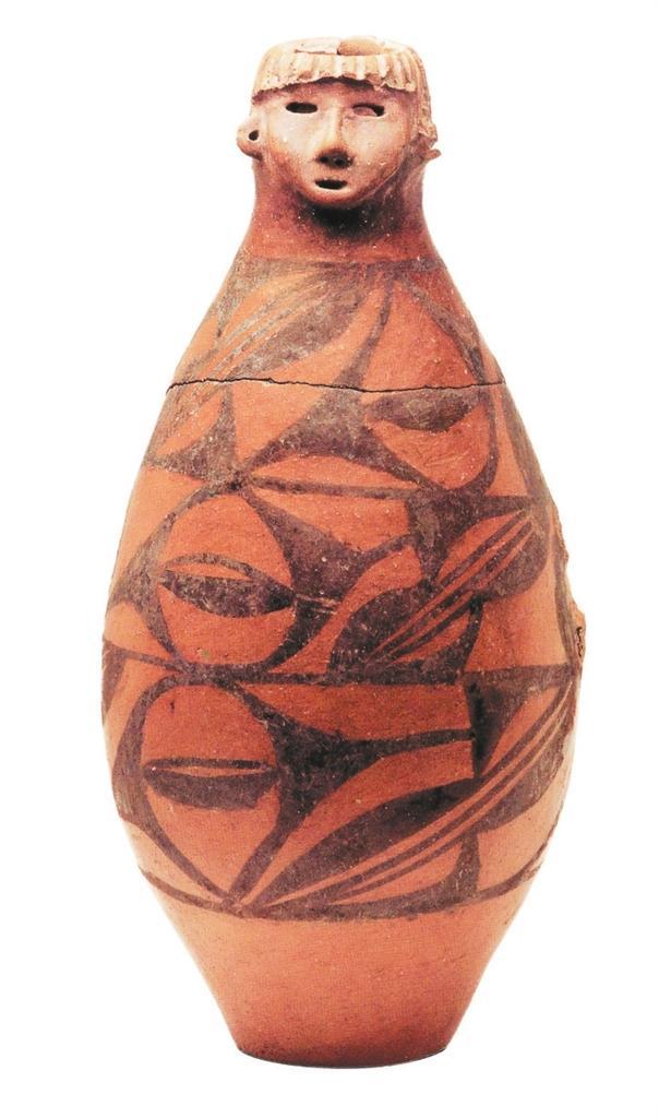人頭形器(qi)口彩陶瓶(ping) 仰韶文化(hua) 甘肅(su)省博物館藏