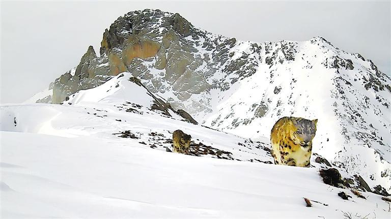 鏡頭一:雪(xue)豹攜幼展(zhan)現高原(yuan)新生態